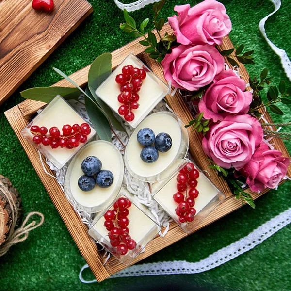 Стандартный: роза розовая - 5 шт., декоративная зелень, декор, десерт в стакане - 6 шт., оазис, деревянная коробка.